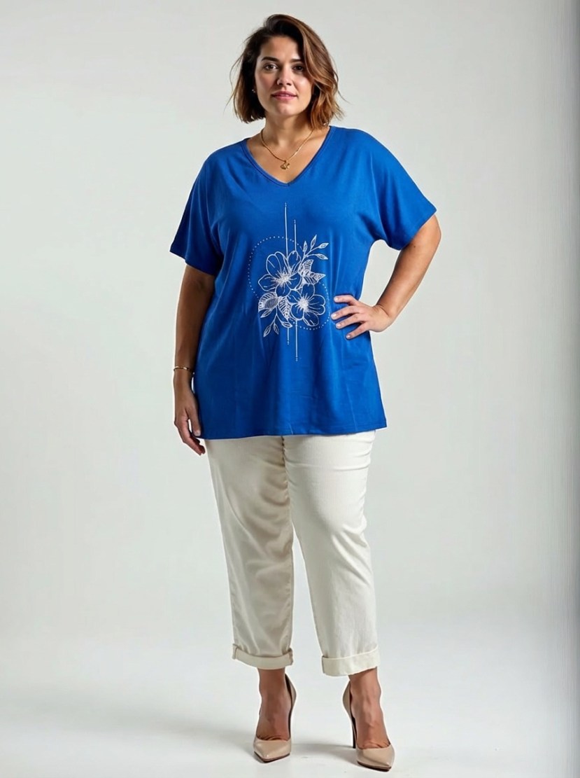 Krūtinės apimtis 140-144cm, apimtis palaidinės apačioje 140-142cm, ilgis svyruoja esant skirtingai spalvai 74-77cm.